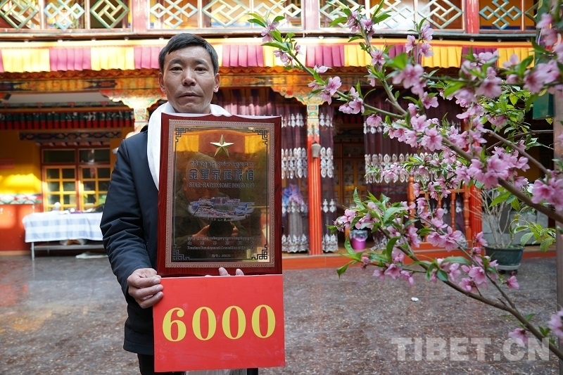 圖為瓊結(jié)縣普布旦增家經(jīng)營的雪康桑家庭旅館榮獲“銀星”家庭旅館 攝影:曲杰