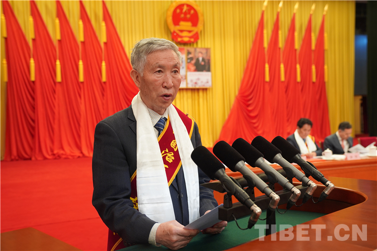 圖為2018年度西藏自治區(qū)科學(xué)技術(shù)獎(jiǎng)突出貢獻(xiàn)獎(jiǎng)獲得者劉務(wù)林發(fā)言 攝影:王淑