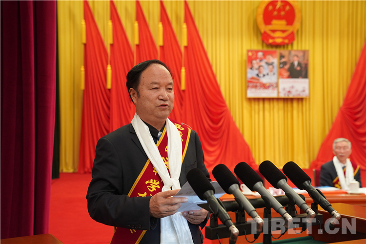 圖為2019年度西藏自治區(qū)科學(xué)技術(shù)獎(jiǎng)突出貢獻(xiàn)獎(jiǎng)獲得者王保海發(fā)言 攝影:王淑