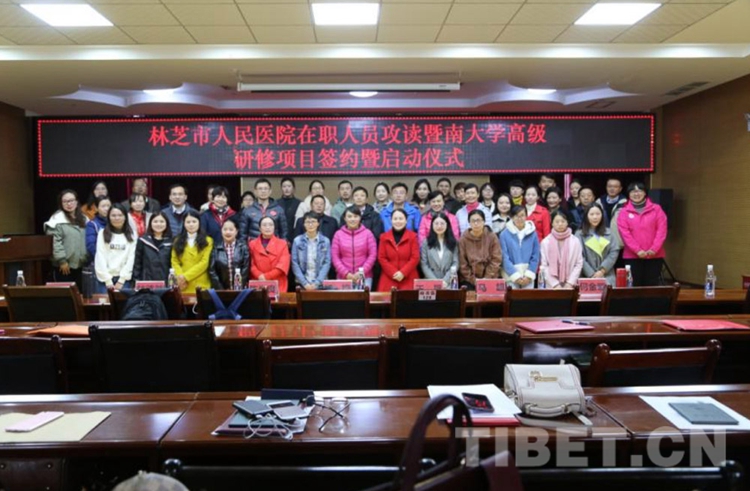 圖為暨南大學(xué)研究生培養(yǎng)項(xiàng)目在林芝市人民醫(yī)院?jiǎn)?dòng) 圖片由廣東援藏醫(yī)療隊(duì)提供