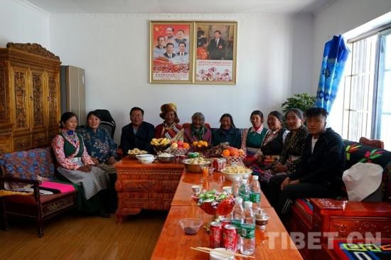 圖為守護(hù)祖國(guó)邊境線的烏巴?平措南加家族,左五為烏巴?平措南加的妻子次仁卓嘎 攝影:張敏