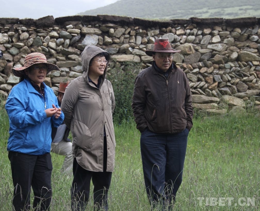 從左至右:圖為西藏農(nóng)牧科學(xué)院畜牧所所長(zhǎng)姬秋梅(項(xiàng)目第一主持人,藏族,博士)、劉艷、澤柏(藏族)在西藏自治區(qū)拉薩市墨竹工卡斯布牧場(chǎng)查看圏窩種植牧草技術(shù)示范