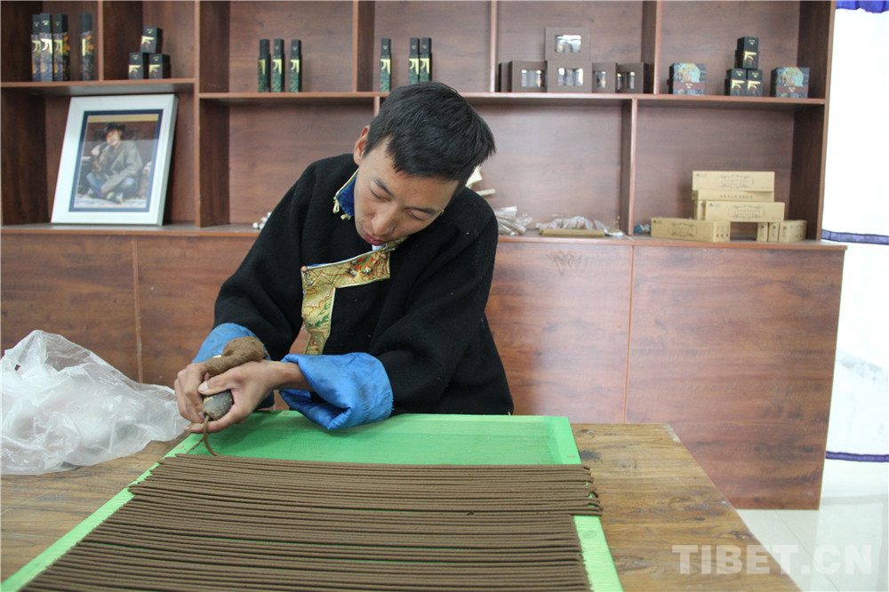 圖為藏香非遺傳承人展示制香 攝影:王茜