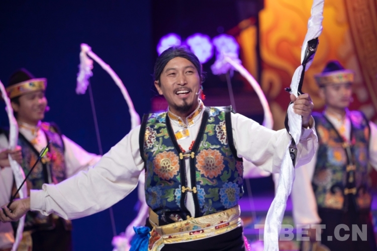 藏戲《慶功宴》用精湛的藝術表現(xiàn)手法、高亢的民族唱腔,完美演繹了《格薩爾》史詩的重要篇章《賽馬稱王》的重要篇章;《工布箭歌》將西藏自治區(qū)非物質文化遺產(chǎn)工布響箭搬上舞臺讓觀眾們領略了箭歌藝術的魅力;舞蹈《氆氌情》展現(xiàn)了西藏自治區(qū)山南市扎囊縣各族群眾用“氆氌”織出美麗新生活的喜人景象。