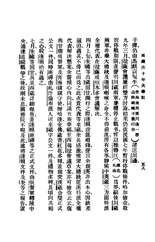那么,何以后來出現(xiàn)朱繡為代表團(tuán)負(fù)責(zé)人一說呢?原來朱繡進(jìn)藏前,就“于藏事先后得失情形,了如親歷”“每與談及藏事,批隙導(dǎo)竅,理解豁然”。此次,他赴藏耳聞目睹感受更深,痛感“訌內(nèi)虎紛爭,烈烈邊風(fēng)急”。 他在代表團(tuán)的報告未獲重視后,慮及有關(guān)西藏近代歷史尚無一可資借鑒之書,而“國人與政府又太不明了邊事”,決定將西藏近六十年的大事輯為一冊,以供“留心邊事者一助”。他利用閑暇時間,查找有關(guān)資料,如條約、公文等,并四處奔走,調(diào)查川藏前后戰(zhàn)爭情形,最終于1925年將書印行問世,為后人了解和研究西藏這段特殊的歷史時期留下了不可多得的資料。