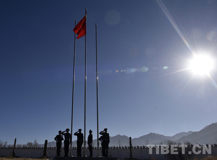 中國西藏網(wǎng)訊 伴隨著洪亮的國歌聲,一面五星紅旗冉冉升起。1月1日上午,西藏自治區(qū)拉薩市公安局城關(guān)公安分局納金派出所及轄區(qū)內(nèi)百余名群眾著盛裝齊聚一堂,舉行升國旗、慶元旦、喜迎“中國人民警察節(jié)”活動。