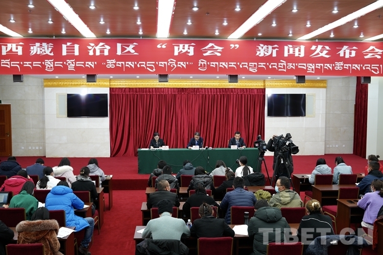 圖為西藏自治區(qū)“兩會”新聞發(fā)布會現(xiàn)場 攝影:趙耀