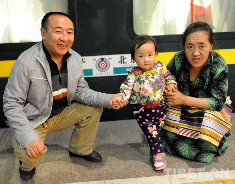 這是其美拉姆從北京乘火車返藏時(shí),與阿爸和阿媽在北京西站所乘坐的京藏列車前合影留念(唐召明2014年10月17日攝)