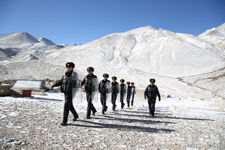 圖為王蘭波帶隊(duì)巡邏珠穆朗瑪峰核心景區(qū) 攝影:彭維熙