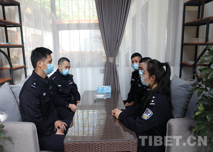 圖為民警正在向新警介紹西藏風(fēng)土人情 攝影:何玲