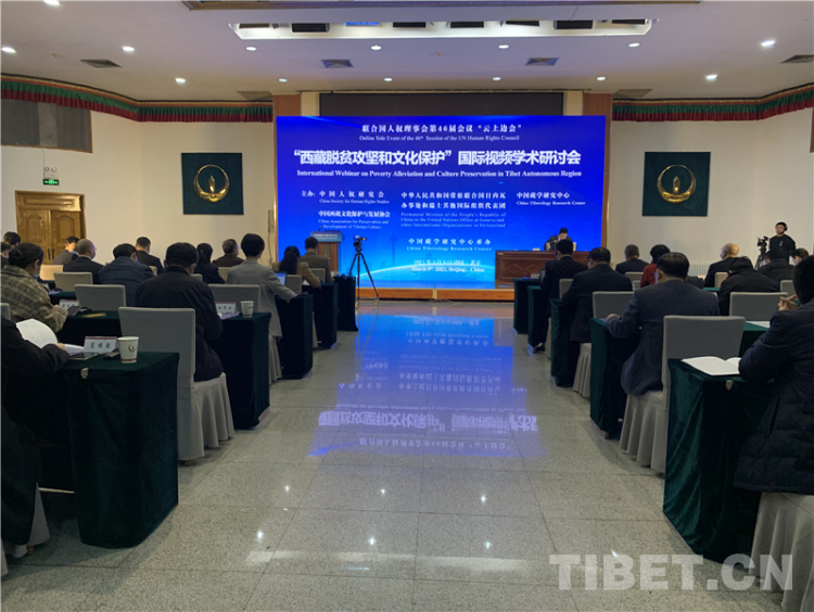 中國(guó)西藏網(wǎng)訊 3月9日,聯(lián)合國(guó)人權(quán)理事會(huì)第46屆會(huì)議“西藏脫貧攻堅(jiān)和文化保護(hù)”云上邊會(huì)采用線上線下結(jié)合方式舉行。線下主會(huì)場(chǎng)設(shè)在位于北京的中國(guó)藏學(xué)研究中心。來自境內(nèi)外有關(guān)減貧和文化保護(hù)領(lǐng)域的專家學(xué)者參加了研討。