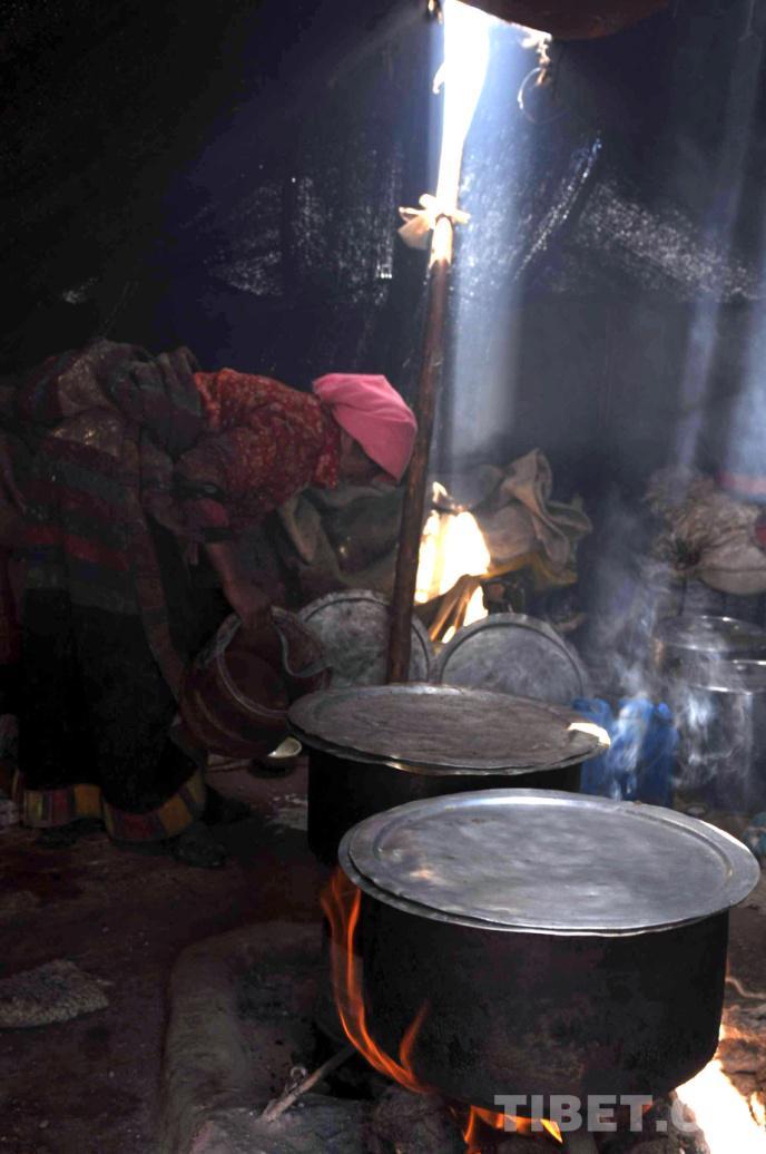 圖為藏北雙湖特別區(qū)(現(xiàn)改為雙湖縣)嘎措鄉(xiāng)牧女正在夏季游牧帳篷里用大鍋煮茶 唐召明2009年攝