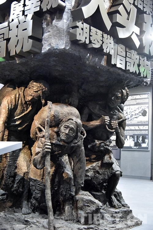 圖為西藏百萬農(nóng)奴解放紀念館內(nèi)反映舊西藏多如牛毛的苛捐雜稅的雕塑 攝影:王媛媛