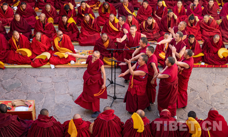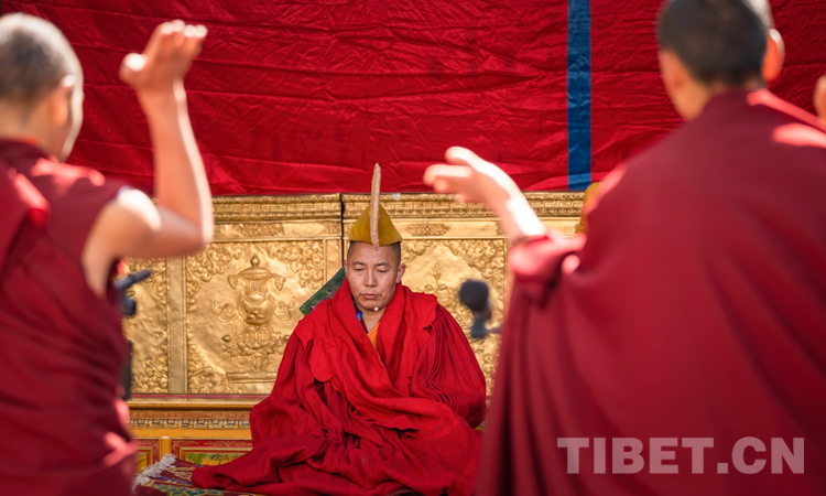 圖為西藏自治區(qū)2021年度藏傳佛教學(xué)經(jīng)僧人考核晉升格西拉讓巴學(xué)位立宗答辯暨頒證儀式現(xiàn)場 攝影:趙耀
