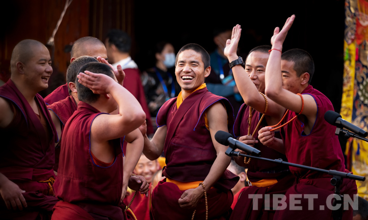 當(dāng)日,在立宗答辯活動(dòng)中,考僧們圍繞陪考僧人所提有關(guān)五部經(jīng)典方面的內(nèi)容進(jìn)行了精彩答辯。共有來自拉薩、日喀則、山南、昌都、那曲市、云南迪慶州有關(guān)寺廟的13名考僧獲得了格西拉讓巴學(xué)位。隨后,西藏自治區(qū)政府領(lǐng)導(dǎo)向獲得學(xué)位的考僧贈(zèng)送五彩緞、干果、袈裟和禮金。