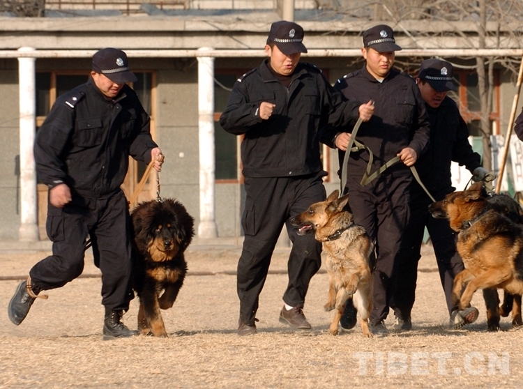 藏獒因其身材高大、性情威猛、對(duì)主人極度忠誠(chéng)和對(duì)陌生人的極度警惕的特點(diǎn),很適合應(yīng)用于公安部門的防暴工作。