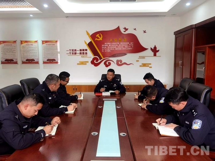 圖為拉薩出入境邊防檢查站執(zhí)勤一隊(duì)組織民警學(xué)習(xí)