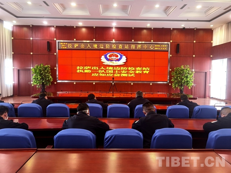 圖為拉薩出入境邊防檢查站執(zhí)勤一隊(duì)國(guó)土安全教育應(yīng)知應(yīng)會(huì)測(cè)試