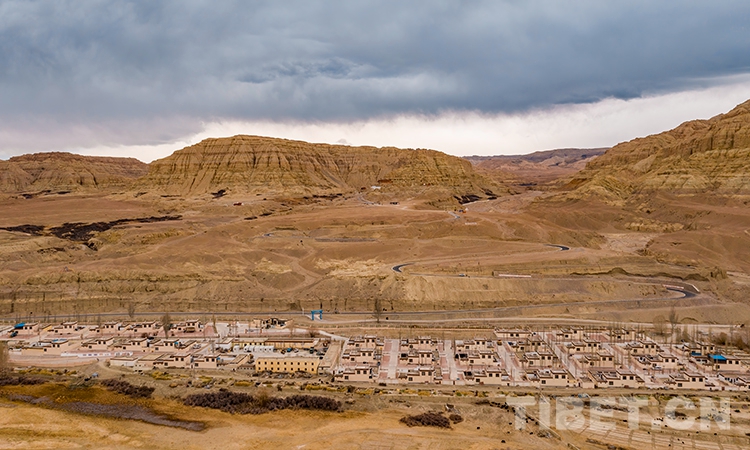 圖為札布讓村與遠處的古格王朝遺址 攝影:趙耀
