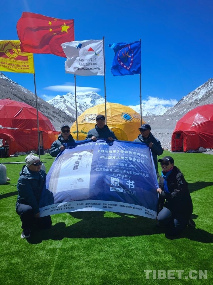中國西藏網(wǎng)訊 5月9日,在位于西藏自治區(qū)日喀則市的珠峰大本營,長篇小說《珠峰海螺》的作者黃怒波先生和該書的出版方人民文學出版社,共同向日喀則市、西藏登山協(xié)會、西藏圣山登山探險服務(wù)有限公司隊員贈書。