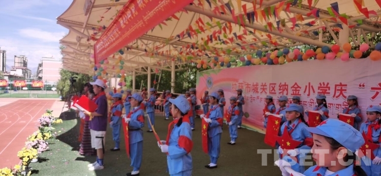圖為西藏自治區(qū)拉薩市城關(guān)區(qū)納金小學(xué)“童心向黨、做時(shí)代新人”六一兒童節(jié)活動(dòng)現(xiàn)場(chǎng)