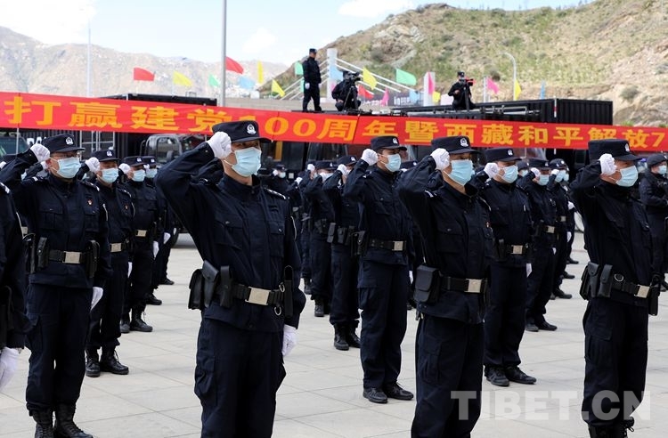 中國西藏網訊 6月15日下午,西藏出入境邊防檢查總站召開中國共產黨成立100周年、西藏和平解放70周年大慶安保誓師大會。