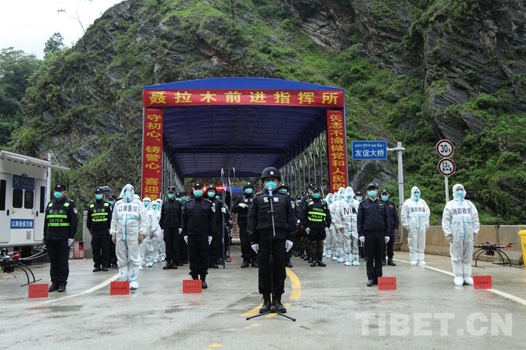 誓師大會奏唱中華人民共和國國歌、中國人民警察警歌,日喀則、聶拉木兩個前進指揮所代表基層作表態(tài)發(fā)言,全體參戰(zhàn)民警進行了莊嚴宣誓。