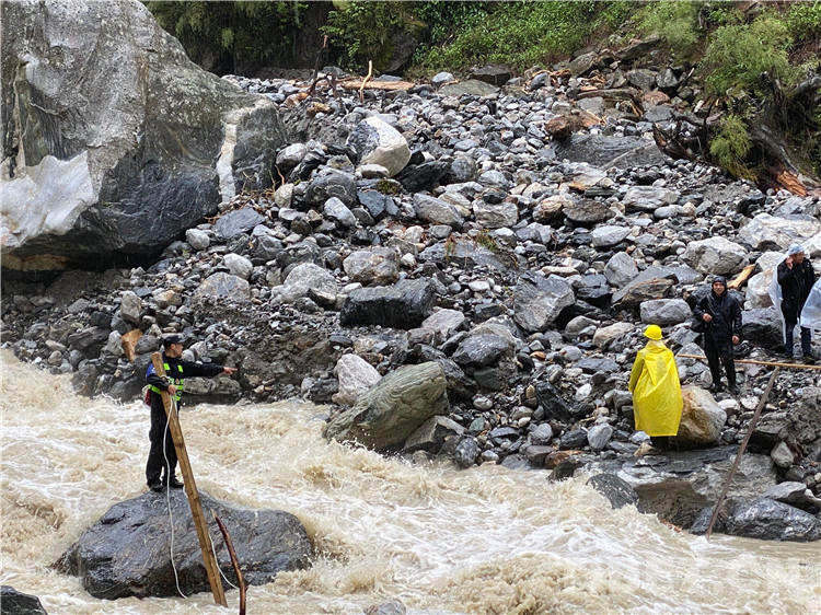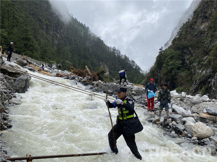 在經(jīng)過勘察后,派出所民警發(fā)現(xiàn)左布德至國防公路四號橋位置發(fā)生大面積山體滑坡10余處,救援隊(duì)研判搜救風(fēng)險后,通過搭橋、吊繩、分批護(hù)送等方式打通了長達(dá)10公里的“生命通道”。