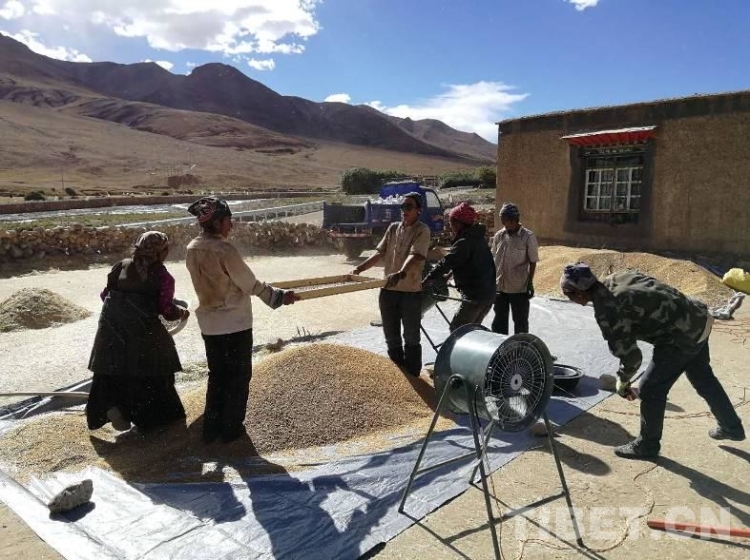 工作隊根據(jù)在前期深入群眾家中和田間地頭了解到的“孤困寡”等人群在秋收中存在勞動力緊缺等問題,號召全體駐村隊員和村黨員干部組成青稞秋收黨員志愿服務(wù)隊自2017年9月13日起,對村孤寡戶、缺乏勞動力戶及特困戶進(jìn)行秋收幫扶,僅用3天就完成困難戶的收割,解決了他們勞力緊缺的燃眉之急。9月底,拉木堆村的秋收工作已經(jīng)進(jìn)入收尾階段。村民們都說,今年因為有收割機,收割時間比去年縮短了兩天。當(dāng)全村408畝青稞全部收割完畢,堆置田地中晾曬。聽說今年糧食產(chǎn)量預(yù)計將比上年增收10%左右,再創(chuàng)新高,從干部到群眾,人人樂開了花。