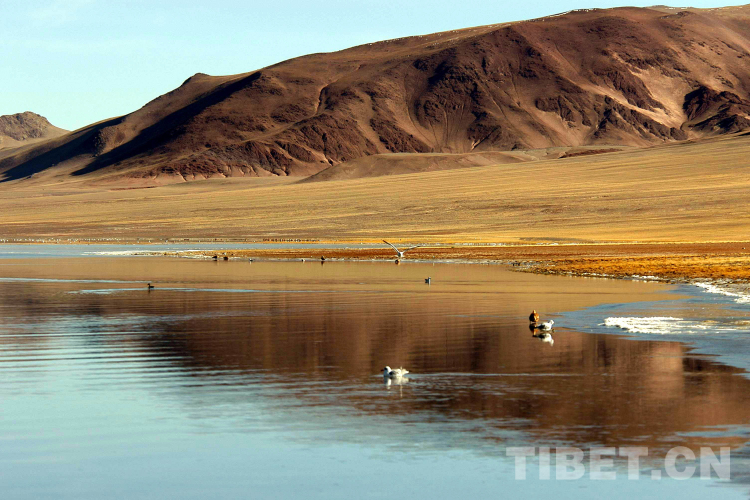 盡管是盛夏時(shí)節(jié),風(fēng)過之處仍感覺到肌膚生涼。色林錯(cuò)湖水中有許多飛禽。我幻想,如果把這個(gè)湖搬到盛夏的北京,該讓多少人欣喜若狂??!