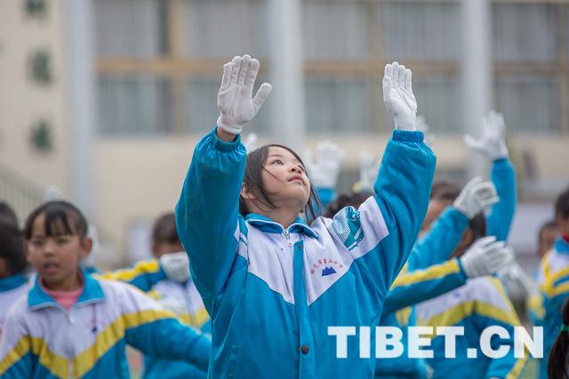 圖為林芝市第二小學(xué)學(xué)生在進(jìn)行體操表演 攝影:趙耀