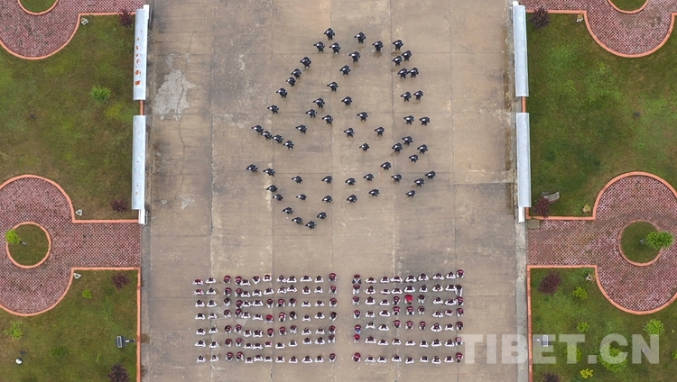 圖為西藏亞東出入境邊防檢查站組織全站民警和140余名中學生組成“黨徽下的倒計時”方陣,慶祝建黨100周年