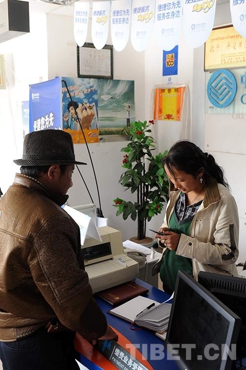 這是雙湖特別區(qū)(現(xiàn)雙湖縣)電信所業(yè)務人員在辦理手機業(yè)務(唐召明2009年8月3日攝)