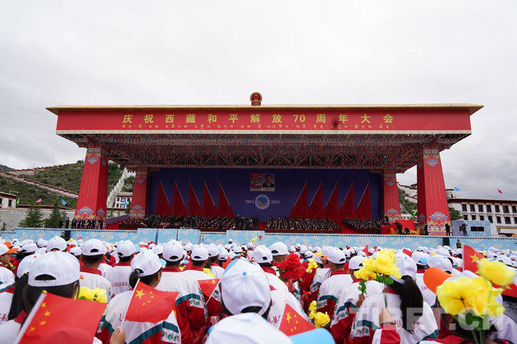 圖為慶祝西藏和平解放70周年大會現(xiàn)場 攝影:賈華加
