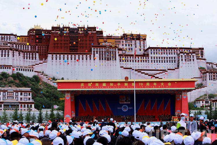 8月19日,西藏自治區(qū)2萬多名各族干部群眾歡聚在布達(dá)拉宮廣場,參加慶祝西藏和平解放70周年大會。