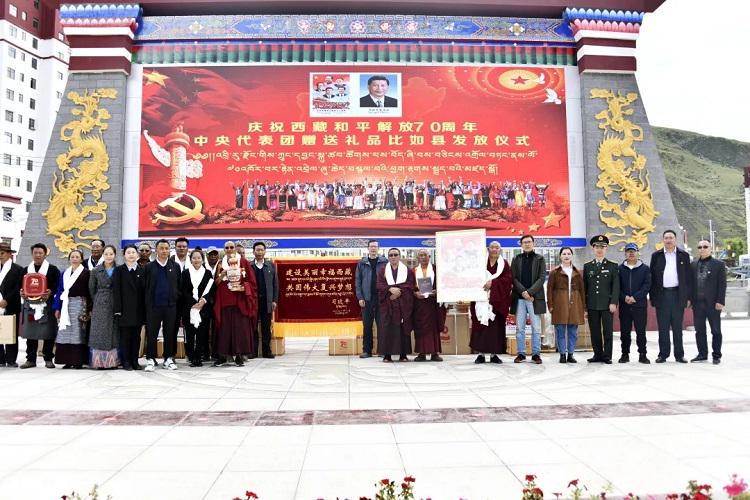 中國西藏網(wǎng)訊 為表達以習近平同志為核心的黨中央的親切關懷和全國人民的深情厚誼,出席西藏和平解放70周年慶祝活動的中央代表團向西藏贈送多項紀念品。8月23日下午,西藏自治區(qū)那曲市比如縣隆重舉行中央代表團贈送禮品發(fā)放儀式。