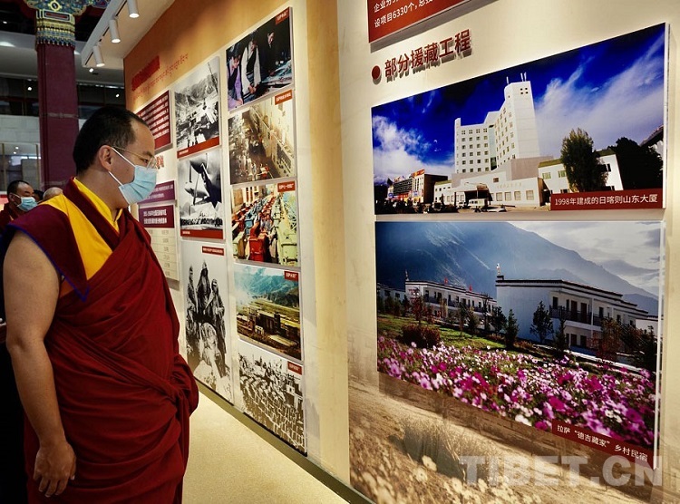 《十七條協(xié)議》簽訂、西藏自治區(qū)第一次人民代表大會(huì)召開、習(xí)近平總書記來信、對(duì)口援藏資金圖表……一幅幅圖片、一份份史料將西藏和平解放70年來,西藏從黑暗走向光明、從落后走向進(jìn)步、從貧窮走向富裕、從專制走向民主、從封閉走向開放的歷史生動(dòng)地呈現(xiàn)出來。班禪不時(shí)駐足觀看,詳細(xì)詢問有關(guān)情況,對(duì)西藏近年來各項(xiàng)事業(yè)取得的成就予以充分肯定。