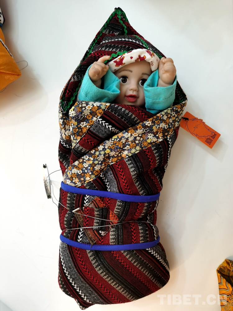 圖為店內(nèi)傳統(tǒng)藏式襁褓 攝影:王淑