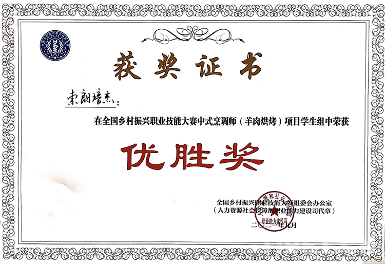 圖為獲獎(jiǎng)證書 西藏現(xiàn)代服務(wù)業(yè)技工學(xué)校供圖