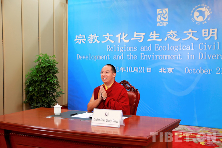 中國(guó)西藏網(wǎng)訊 10月21日,中國(guó)宗教界和平委員會(huì)(以下簡(jiǎn)稱(chēng)“中宗和”)組織召開(kāi)亞洲宗教和平會(huì)議第九屆大會(huì)環(huán)境與發(fā)展分論壇暨“宗教文化與生態(tài)文明”國(guó)際研討會(huì)視頻會(huì)議。“中宗和”委員、中國(guó)佛教協(xié)會(huì)副會(huì)長(zhǎng)班禪額爾德尼?確吉杰布在西藏自治區(qū)日喀則市以視頻連線(xiàn)方式參會(huì),并作《共建人與自然生命共同體 建設(shè)清潔美麗世界》主題發(fā)言。