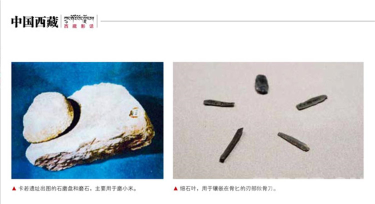 圖右為卡若遺址發(fā)現(xiàn)的部分細(xì)石器 圖片來源:《中國(guó)西藏》雜志2019年第1期第62頁局部翻拍