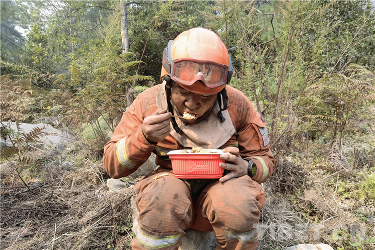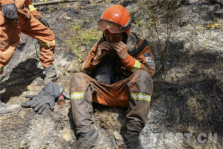 連日來,在火場上,席地而睡的消防員和寧吃干糧不拿群眾“一針一線”的消防員隨處可見。(中國西藏網(wǎng) 通訊員/張強(qiáng) 夏明勇)