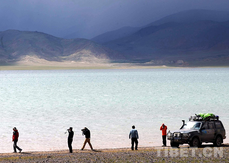 這是自駕游的游人在安多縣境內(nèi)的一湖泊前拍照(唐召明2009年8月3日攝)