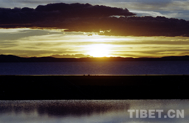 這是晚霞中的納木錯景觀(唐召明1987年攝)