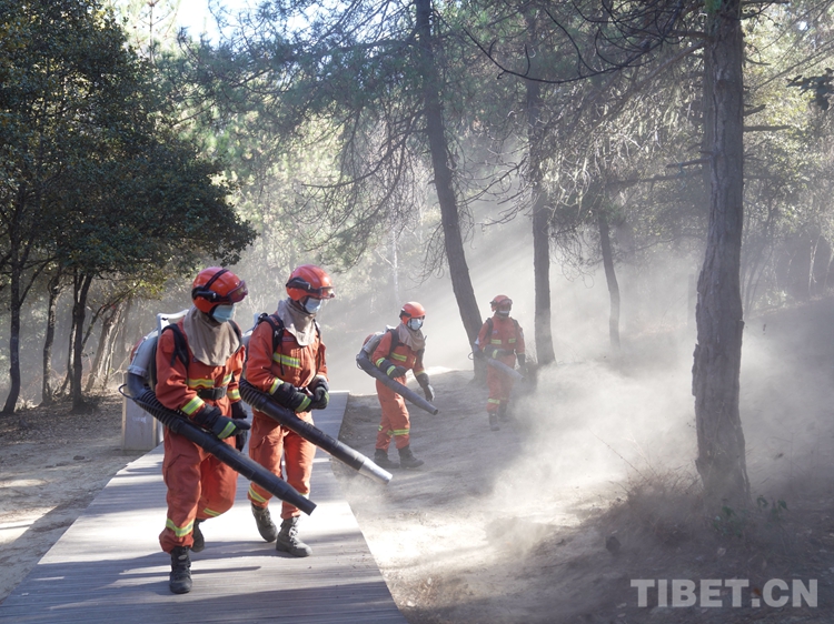 圖為巴宜區(qū)中隊(duì)指戰(zhàn)員清理林下可燃物