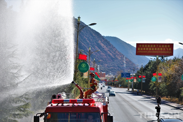 圖為巴宜區(qū)中隊(duì)指戰(zhàn)員運(yùn)用消防車對(duì)道路沿線雜草、枯樹進(jìn)行灑水增濕作業(yè),有效降低重點(diǎn)區(qū)域、道路周邊的火災(zāi)風(fēng)險(xiǎn)