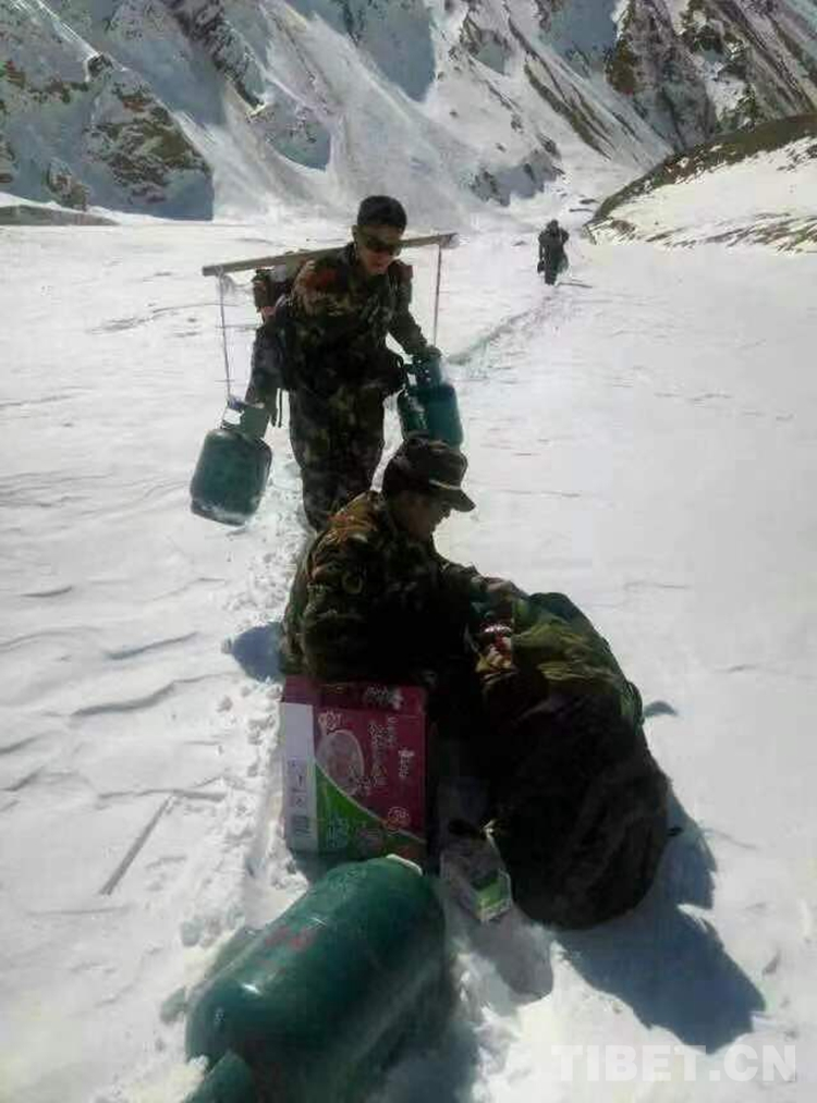 圖為尼瑪國杰與戰(zhàn)友一起輸送補給物資回執(zhí)勤點路上