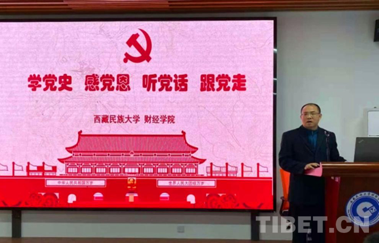 圖為陳愛東為西藏民族大學學生講黨課