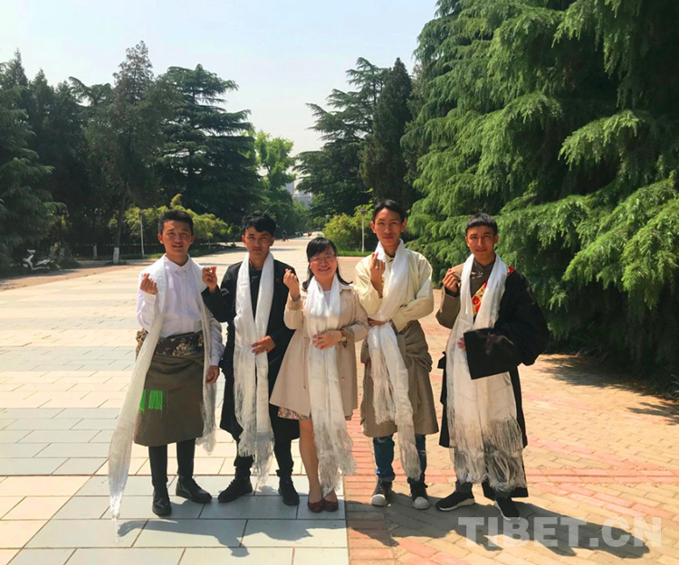 圖為趙毅(右一)與學生赴西藏調(diào)研合影