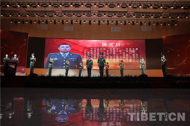 中國(guó)西藏網(wǎng)訊 1月21日晚,為表彰先進(jìn)、激勵(lì)干勁,西藏拉薩警備區(qū)舉行第二屆“雪域尖兵”頒獎(jiǎng)儀式,儀式通過自編自導(dǎo)文藝演出、個(gè)人事跡、MV短片展示,尖兵頒獎(jiǎng)等精彩紛呈的環(huán)節(jié),展現(xiàn)了警備區(qū)官兵在過去一年里取得的豐碩成果和新年度繼續(xù)奮進(jìn)的決心信心。